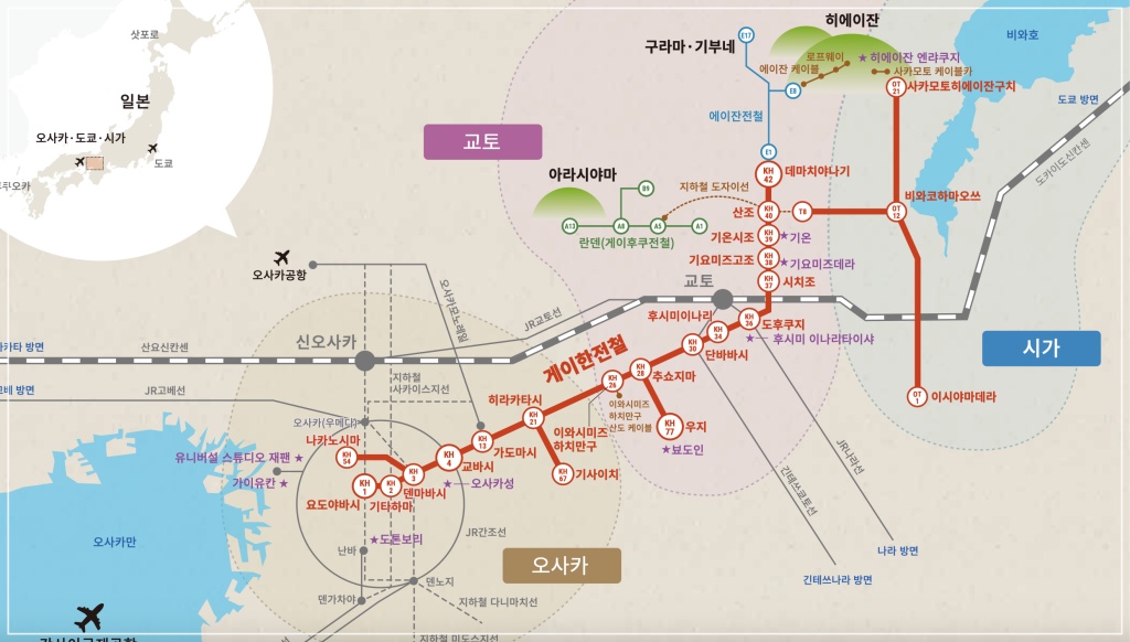 게이한패스 1일권으로는 아래 동선을 추천합니다.