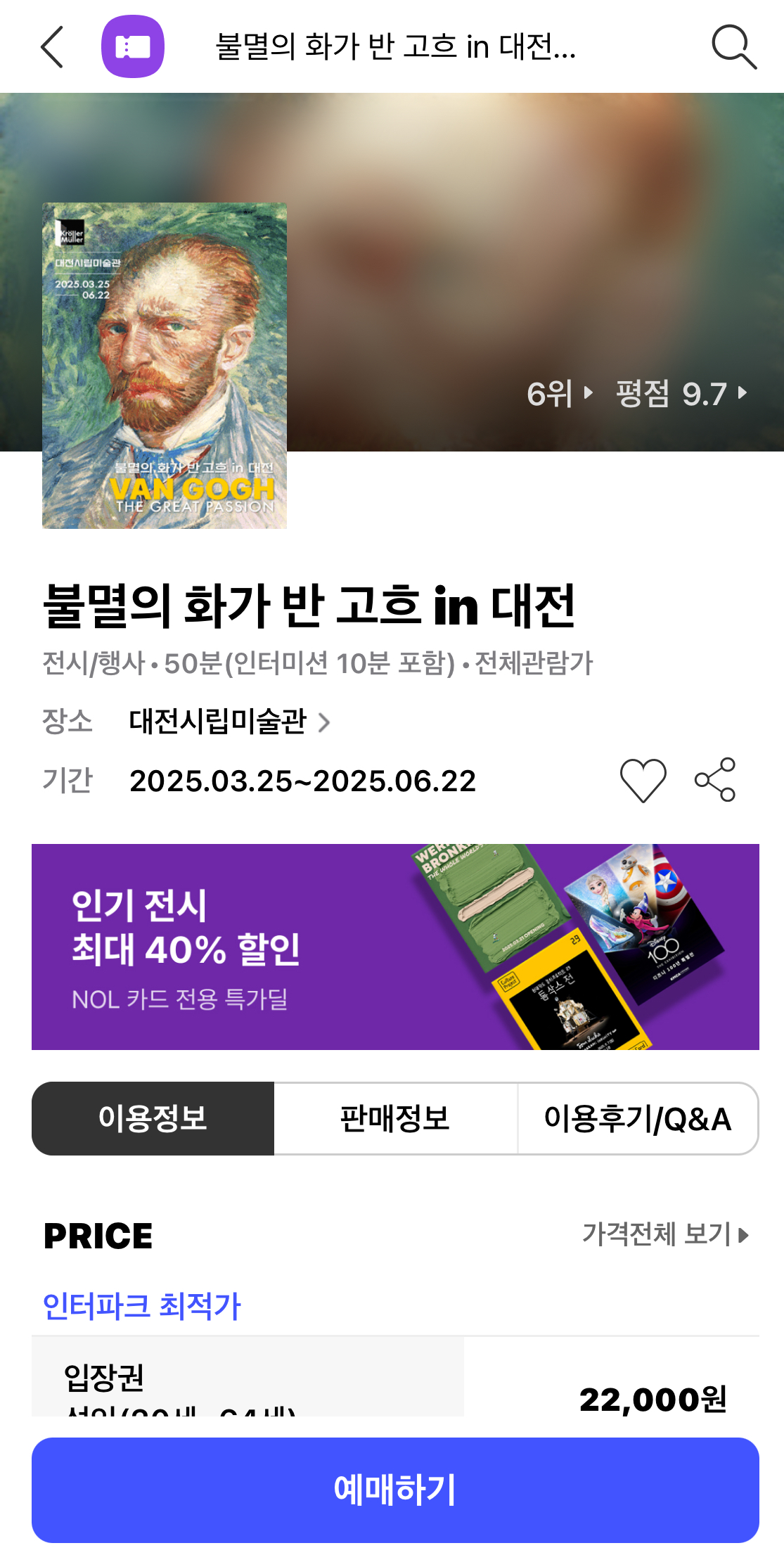 - 전시명: 2025 세계유명미술특별전 《불멸의 화가 반 고흐》